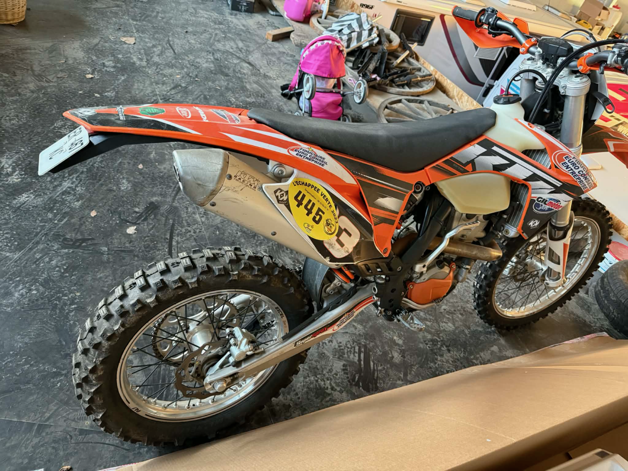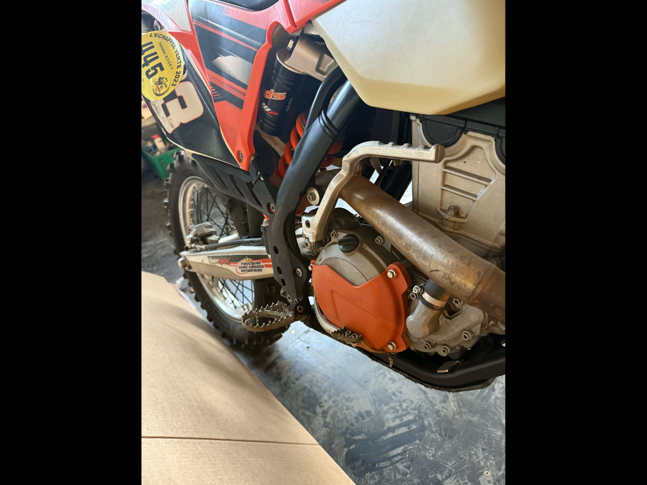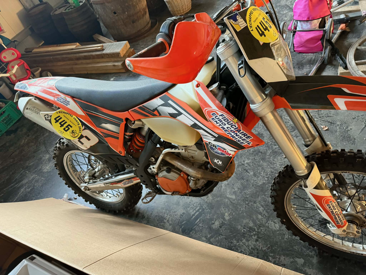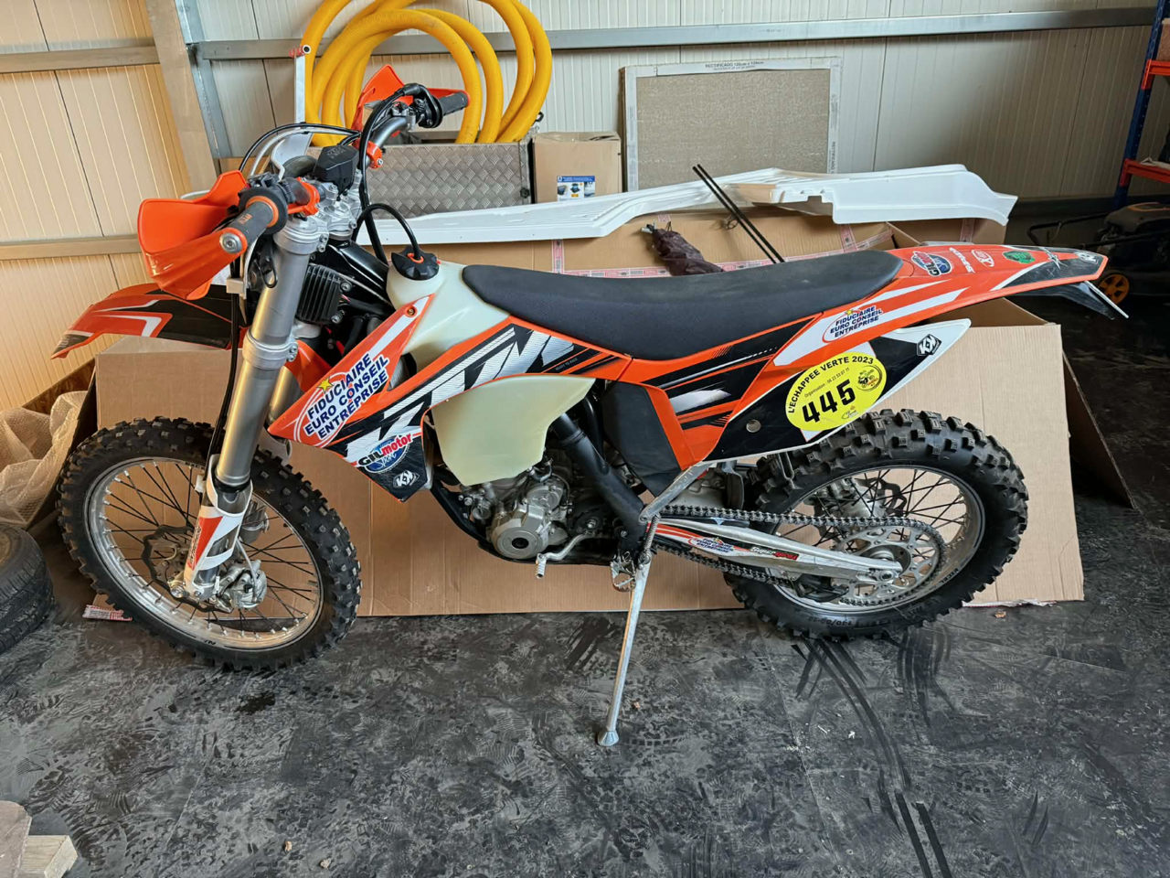 KTM 350 EXC-F Enduro 1ère main certifié, sous le kit déco de protection la carroserie est très propre. La moto a 44,2 heures d’utilisation certifié ainsi que je certifie les 1.343 km, je suis le seul et unique propriétaire. La moto démarre et fonctionne parfaitement bien et elle est donc dans un bon état général, plus de photos sur demande.